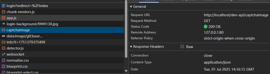 },因为代码经过了多层嵌套和封装,所以我点进getCodeImg()方法对应的ruoyi-ui/src/api/login.js文件查看: