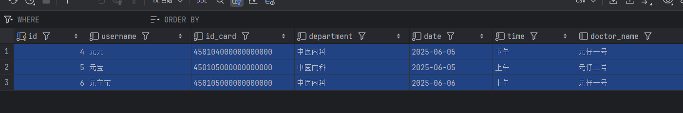 AppointmentTools来调用预约挂号的方法,把用户的挂号信息写进数据库里:import com.yuan.yuanlangchain4j.entity.Appointment; import com.yuan.yuanlangchain4j.service.AppointmentService; import dev.langchain4j.agent.tool.P; import dev.langchain4j.agent.tool.Tool; import jakarta.annotation.Resource; import org.springframework.stereotype.Component; /** * AppointmentTools - com.yuan.yuanlangchain4j.tools * @author Alexavier·元仔 * @see <a href="https://github.com/AlexavierSeville">GitHub: AlexavierSeville</a> * @since 2025/6/4 15:05 */ // 使其能够配置给@AiService的tools属性 @Component public class AppointmentTools { @Resource private AppointmentService appointmentService; @Tool(name="BookAppointment", value = "根据参数,先执行工具方法queryDepartment查询是否可预约,并直接给用户回答是否可预约," + "并让用户确认所有预约信息,必须用户确认后再执行预约。如果用户没有提供具体的医生姓名,请从" + "向量存储中找到一位医生。必须严格确认必填信息是否都提供了") public String bookAppointment(Appointment appointment){ // todo 加锁 //查找数据库中是否包含对应的预约记录 Appointment appointmentDB = appointmentService.getOne(appointment); if(appointmentDB == null){ appointment.setId(null);//防止大模型幻觉设置了id if(appointmentService.save(appointment)){ return "预约成功,并返回预约详情"; }else{ return "预约失败"; } } return "您在相同的科室和时间已有预约"; } @Tool(name="CancelAppointment", value = "根据参数,查询预约是否存在," + "如果存在则删除预约记录并返回取消预约成功,否则返回取消预约失败") public String cancelAppointment(Appointment appointment){ Appointment appointmentDB = appointmentService.getOne(appointment); if(appointmentDB != null){ //删除预约记录 if(appointmentService.removeById(appointmentDB.getId())){ return "取消预约成功"; }else{ return "取消预约失败"; } } //取消失败 return "您没有预约记录,请核对预约科室和时间"; } @Tool(name = "QueryAvailability", value="根据科室名称,日期,时间和医生查询是否有号源,并返回给用户") public boolean queryDepartment( @P(value = "科室名称") String name, @P(value = "日期") String date, @P(value = "时间,可选值:上午、下午") String time, @P(value = "医生名称", required = false) String doctorName ) { System.out.println("查询是否有号源"); System.out.println("科室名称:" + name); System.out.println("日期:" + date); System.out.println("时间:" + time); System.out.println("医生名称:" + doctorName); //TODO 维护医生的排班信息: //如果没有指定医生名字,则根据其他条件查询是否有可以预约的医生(有返回true,否则返回false); //如果指定了医生名字,则判断医生是否有排班(没有排版返回false) //如果有排班,则判断医生排班时间段是否已约满(约满返回false,有空闲时间返回true) return true; } }关于